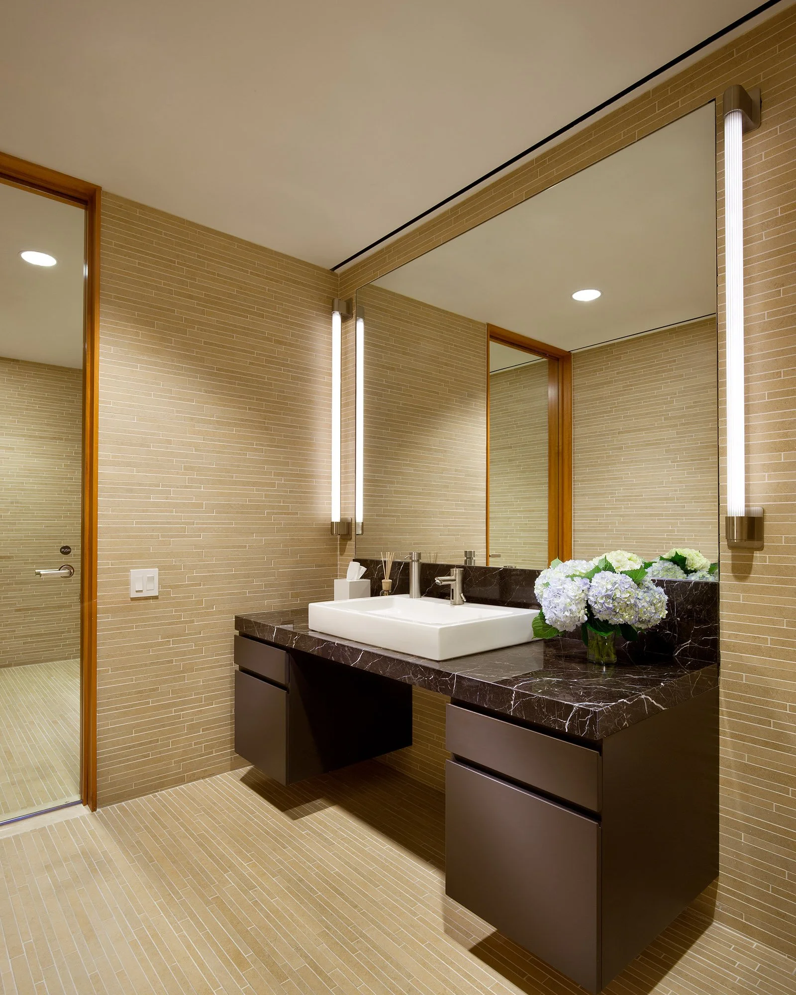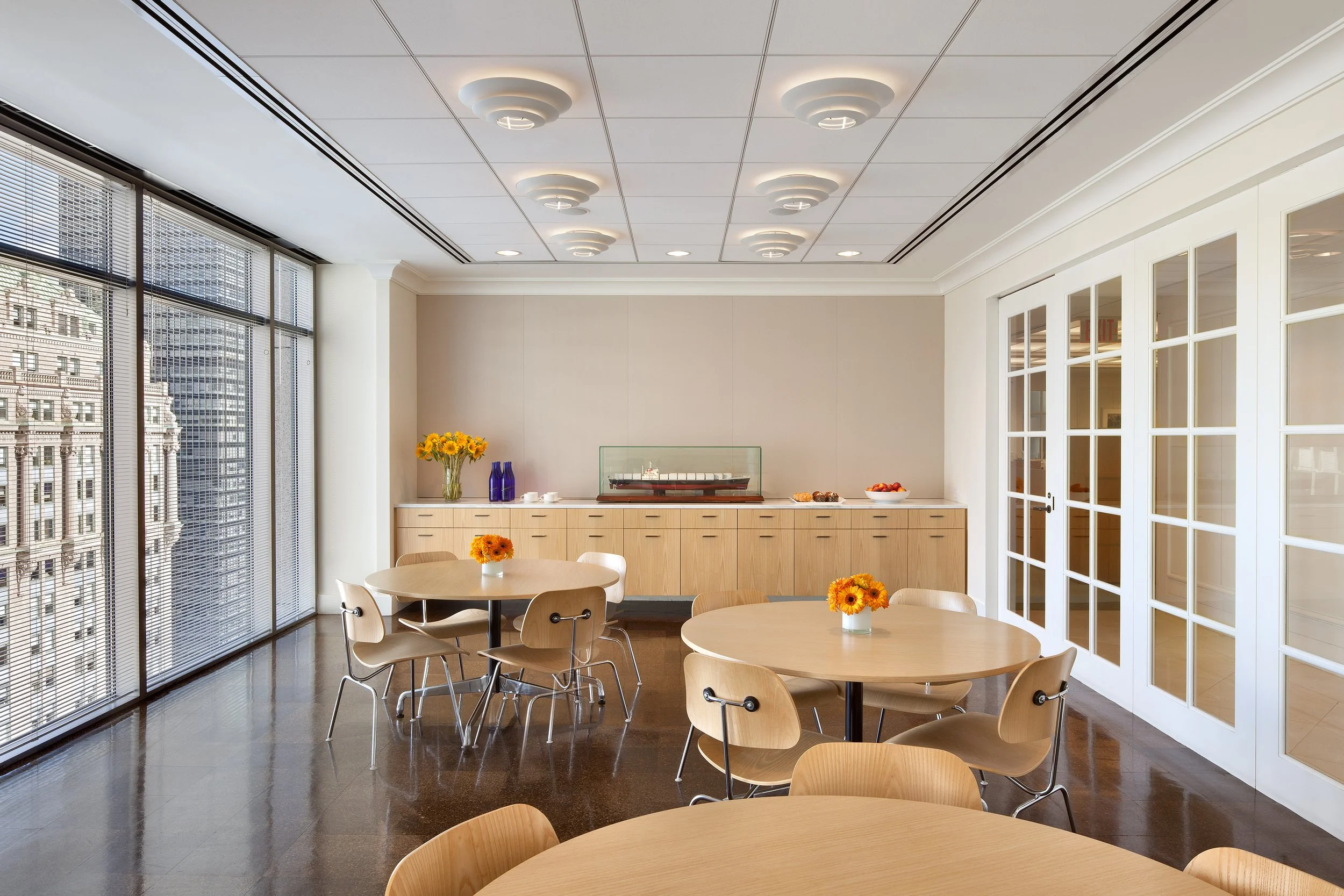 JLL Partners’ move to 300 Park in 2023 still expounds on the original planning with updates including two large shared living room spaces in the work area, a ping pong pantry with seating overlooking the outdoor terraces, ash wood desk enclosures with height adjustable worksurfaces and maximized ceiling heights throughout.