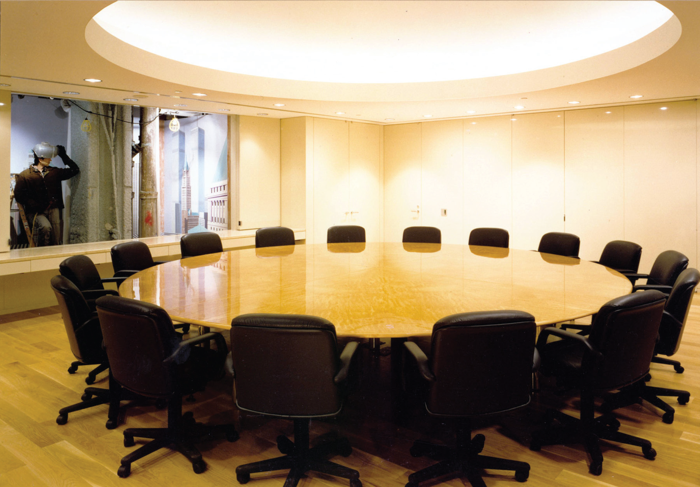 The board room has an enclosed diorama, activated when one enters the room, with a Segal inspired sculpture of a construction worker immersed in the city of buildings built, renovated or owned by LMB, now Lendlease.